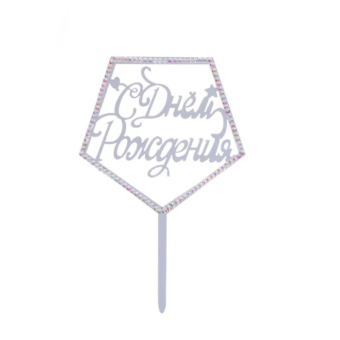 Топпер для торта «С Днём Рождения», со стразами, серебристый