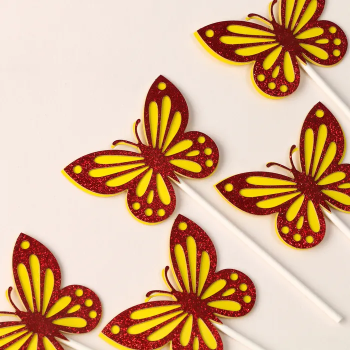 Топпер для торта «Бабочки», набор 5 шт., красный