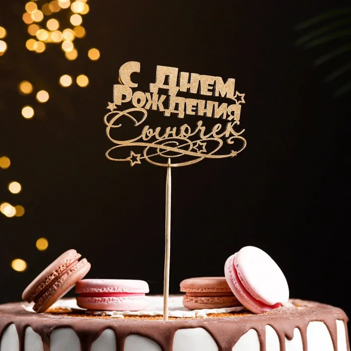 Топпер для торта «С Днём Рождения, сыночек», золотой