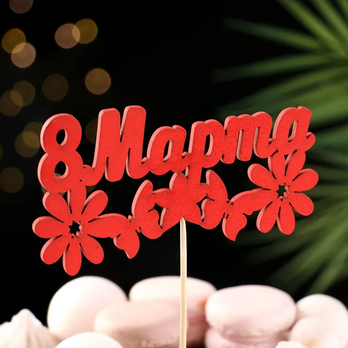 Топпер для торта «8 марта», красный, 12.5×6.9 см