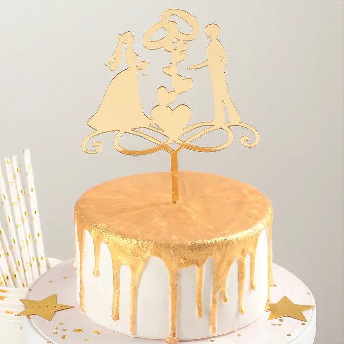 Топпер для торта «Обручальные кольца», 13×18 см, цвет золотистый