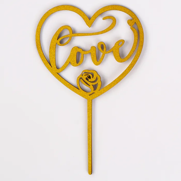 Топпер для торта деревянный «Сердце», с блёстками, золотой