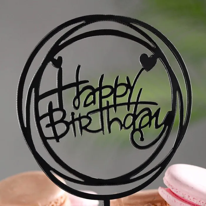 Топпер для торта «День рождения», черный глянец