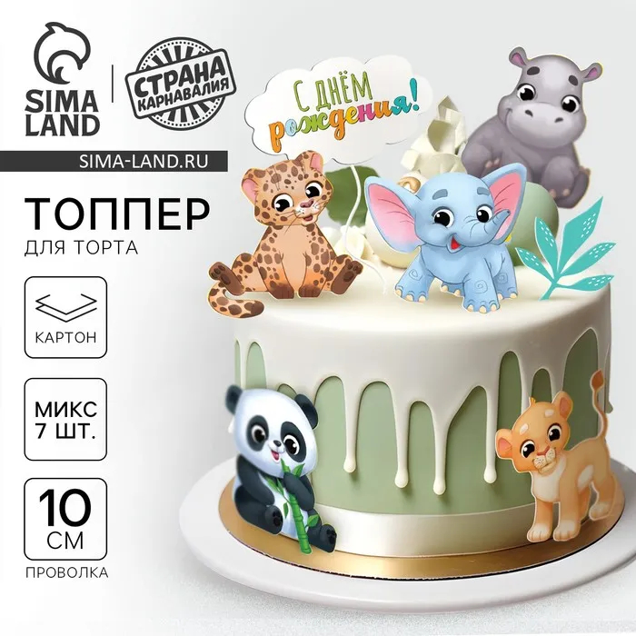 Топпер для торта картон на подложке с проволокой «Зверюшки»