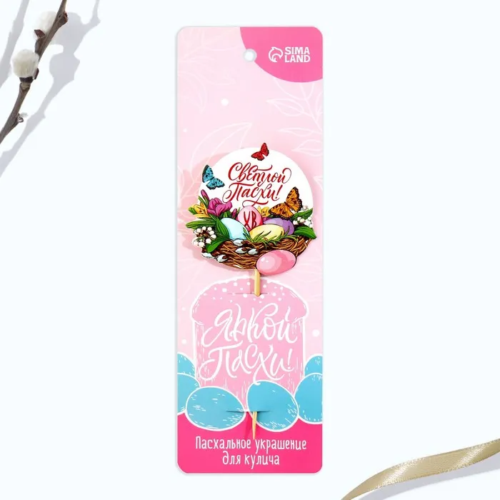 Топпер для украшения кулича «Светлой Пасхи!», 5,5 х 5,5 см