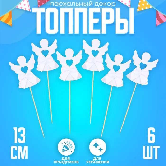 Топпер Ангел с бантиком, набор 6 штук