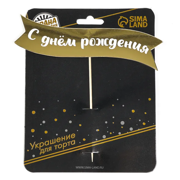 Топпер для торта «С днём рождения», черный с золотым