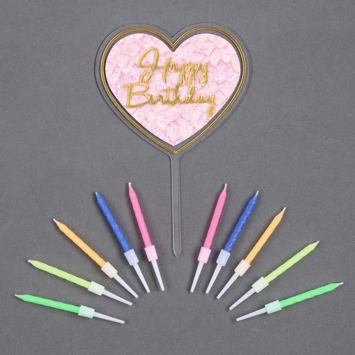 Набор для украшения торта: топпер «С днём рождения», 1 шт., 10 свечей