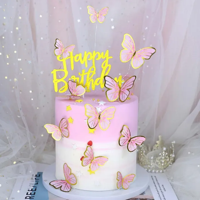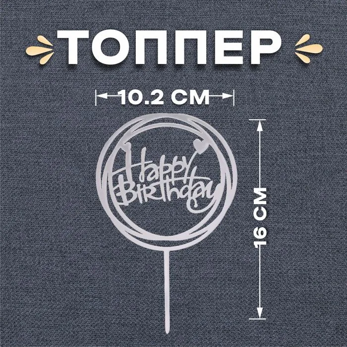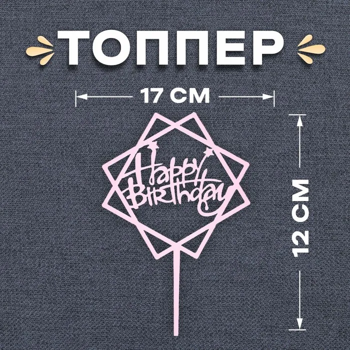 Топпер для торта «С днём рождения», акрил, нежно-розовый
