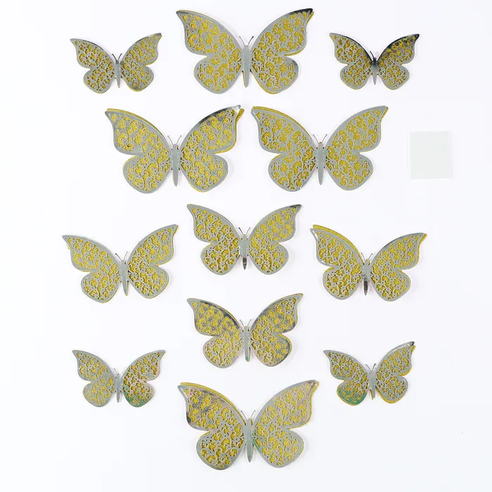 Топпер для торта «Бабочки», с узорами, набор 12 шт., серебряный