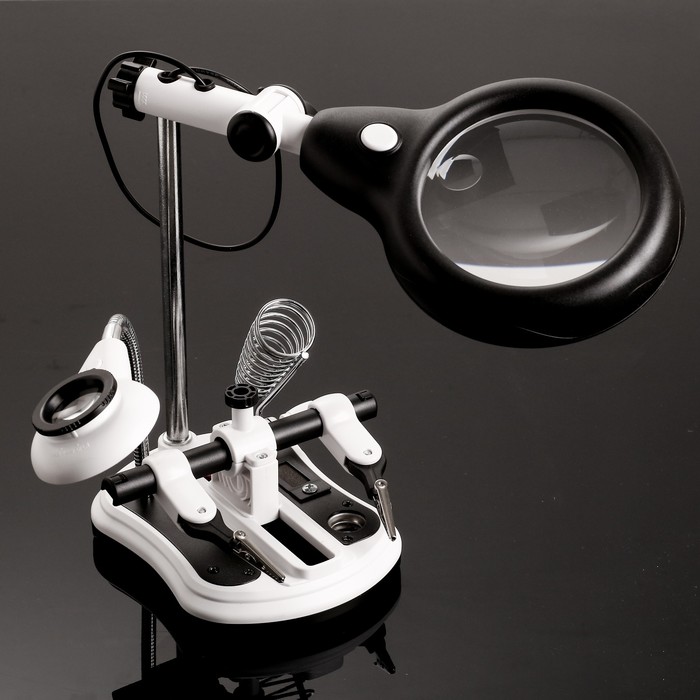 Третья рука для пайки 3,5х 12х, d=65 мм, подсветка, 27х9 см
