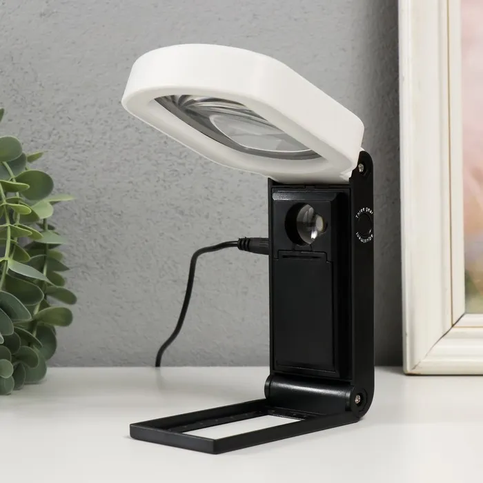 Лампа-лупа х10 ×25 для творчества LEDx24 от 3АAA+ USB линзы d=1 см и 12.5 см 5×8.3×22 см