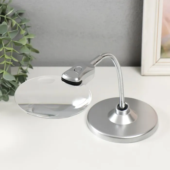 Лампа-лупа х2.25 ×5 для творчества LEDx2 от 3 LR1130 линзы d=2.2 см и 9 см 7.5×19.5×24.3 см