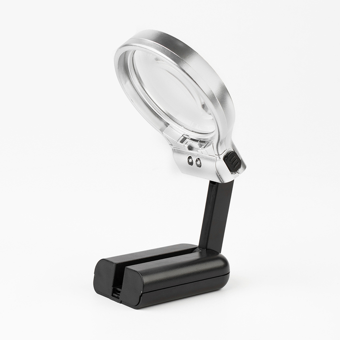 Лупа складная, кратность 5, линза 45мм, металл, с подсветкой