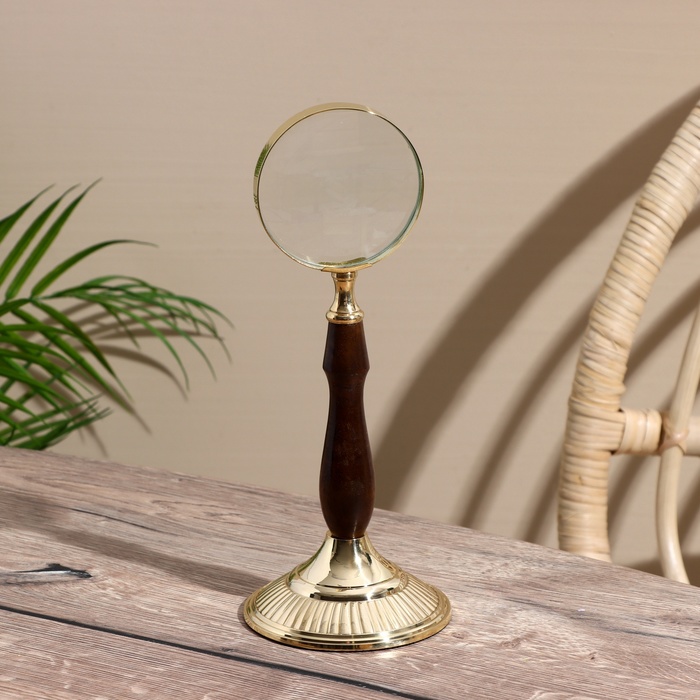 Лупа настольная сувенирная "Ари" дерево, латунь 25 см