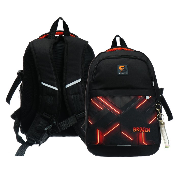 Рюкзак молодёжный, 40×28×18 см, эргономичная спинка, Stavia «Broken», чёрный