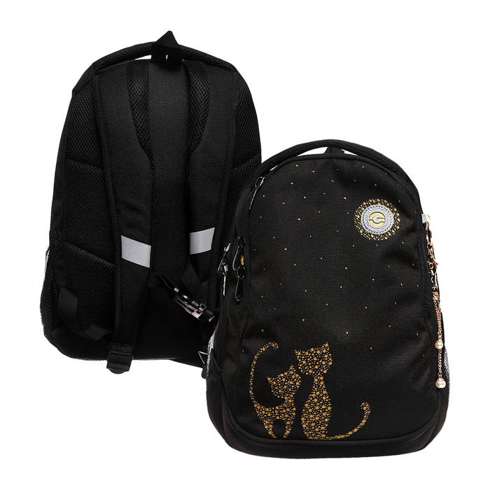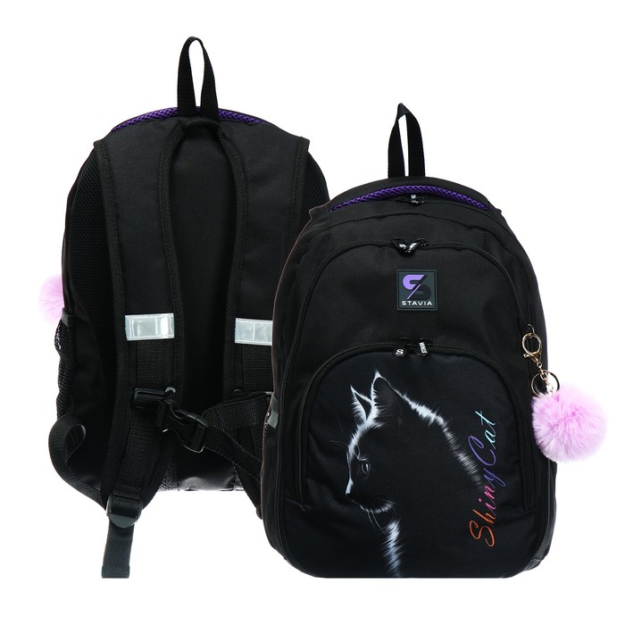 Рюкзак молодёжный, 42×31×13 см, эргономичная спинка, Stavia «Shiny cat», чёрный