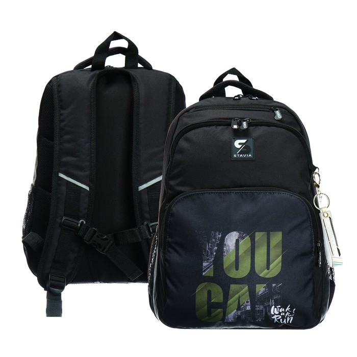 Рюкзак молодёжный, 42×31×13 см, эргономичная спинка, Stavia «You can», чёрный