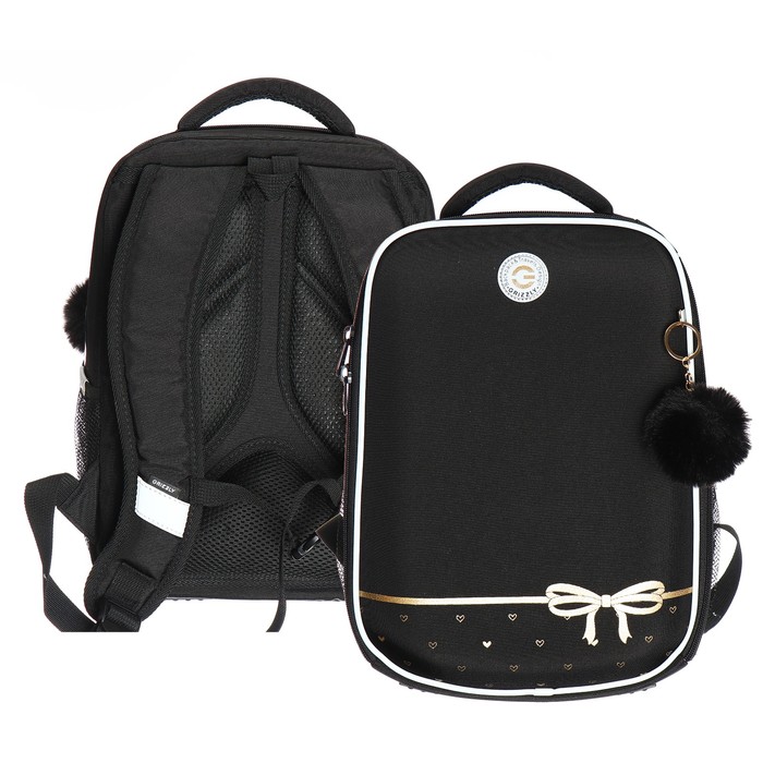 Ранец каркасный Grizzly, 37×26×16 см, брелок, чёрный/золотой