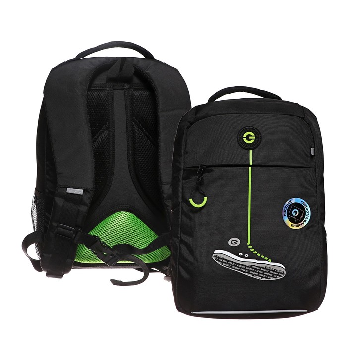 Рюкзак школьный, 39×26×19 см, Grizzly, эргономичная спинка, отделение для ноутбука, чёрный