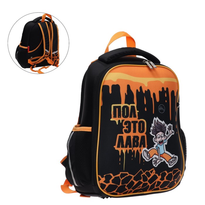 Рюкзак каркасный 35×27×13 см, Hatber Ergonomic Min «Влад А4», чёрный/оранжевый NRk_70104
