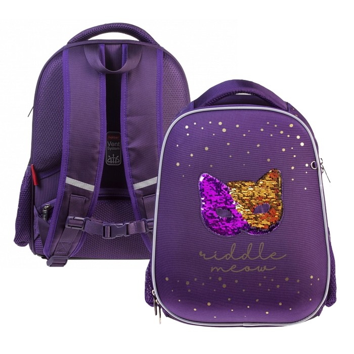 Рюкзак каркасный Hatber Ergonomic light «Разгадай меня», 38×29×17 см, фиолетовый, NRk_85010