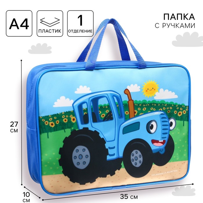 Папка с ручками текстильная А4, 35×27×10 см, «Синий трактор»