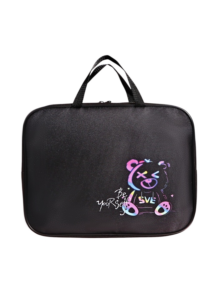 Папка с ручками текстильная А4, 350×270×80 мм, Stavia «Неоновый медведь»