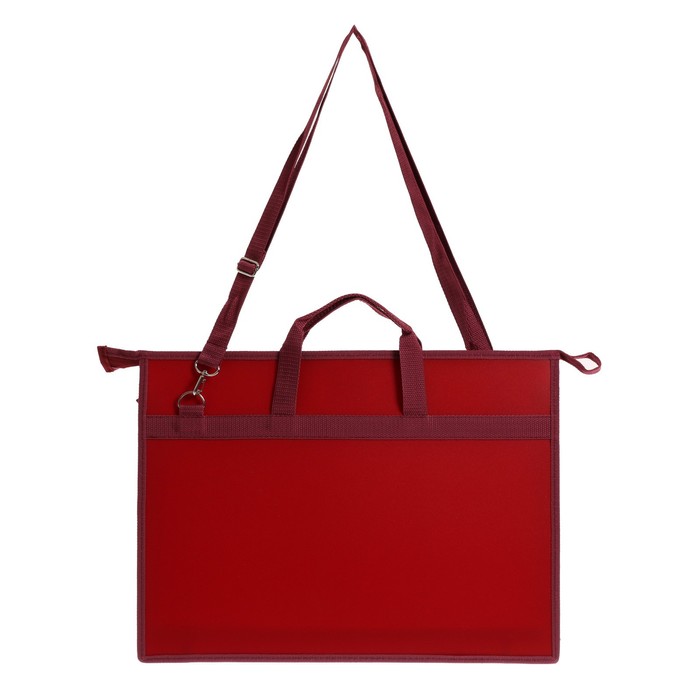 Папка для чертежей и рисунков A3, 420 х 343 х 50 мм, с ручками, пластиковая, молния сверху, 0.9 мм, "Стандарт" ПР 5, плечевой ремень, бордовая