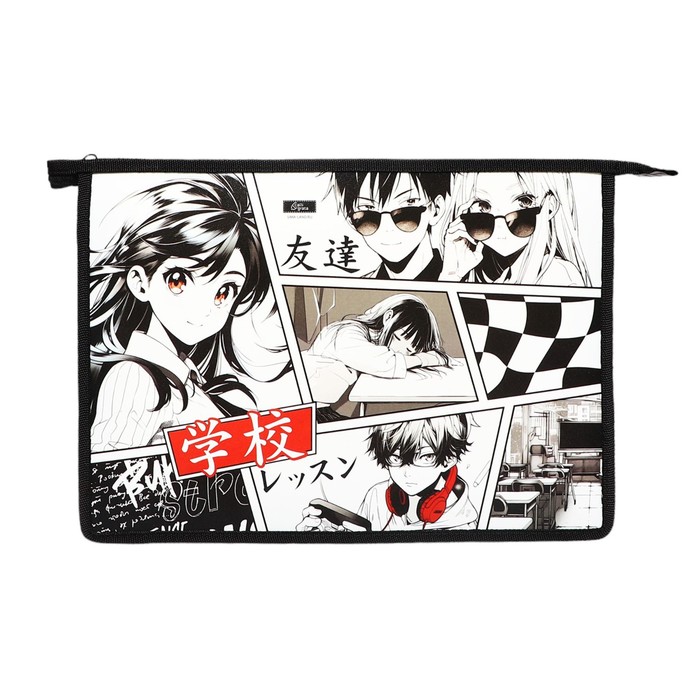 Папка для тетрадей А4, 325×230×55 мм, молния сверху, пластиковая, «Аниме»