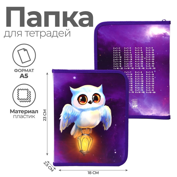 Папка для тетрадей, А5, пластиковая, 18×23×2.5 см «Совушка»