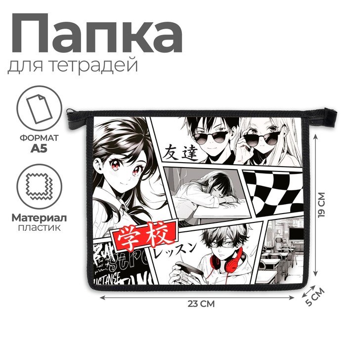 Папка для тетрадей, А5, пластиковая, 19×23×5 см «Аниме»