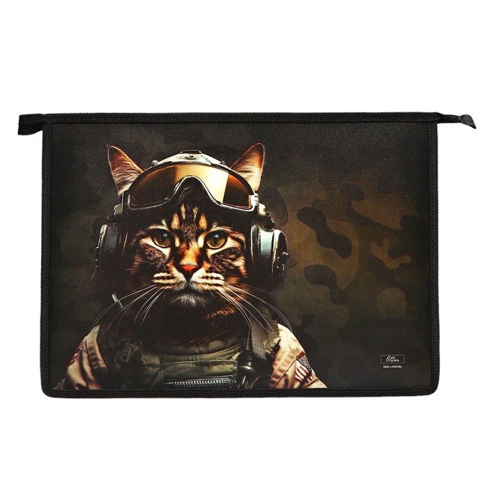Папка для тетрадей А4, 325×230×55 мм, молния сверху, пластиковая, «Кот камуфляж»