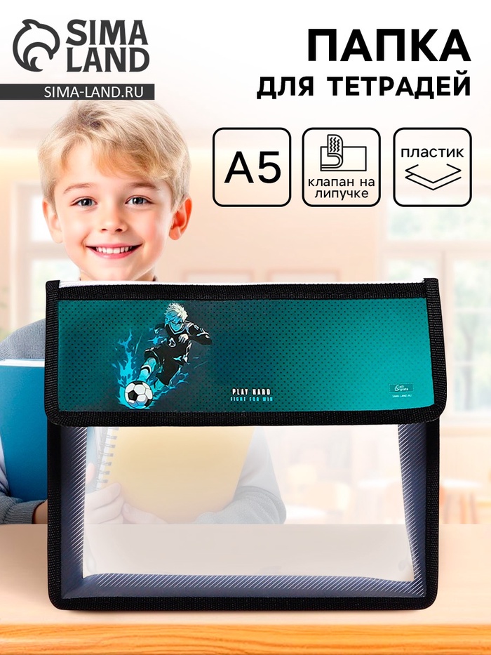 Папка для тетрадей А5 230×190×50 мм, с клапаном на липучке, пластик/текстиль, «Аниме футбол»