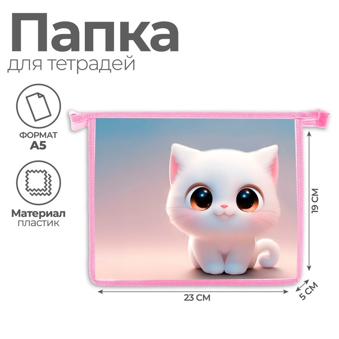 Папка для тетрадей, А5, пластиковая, 19×23×5 см «Котик белый»
