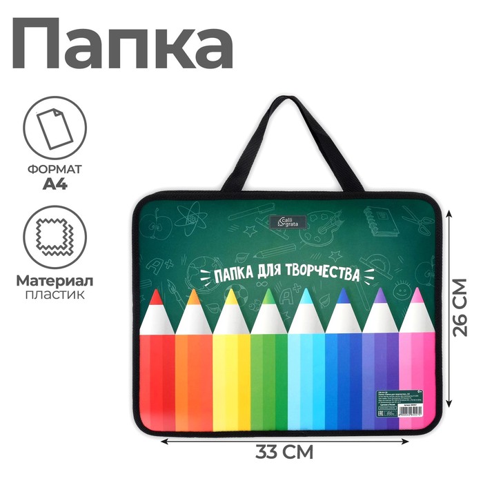 Папка с ручками «Папка для творчества» А4, 330×260×75 мм, пластиковая, ручки-тесьма