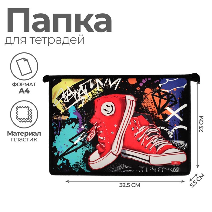 Папка для тетрадей «Кеды» А4, 325×230×55 мм, молния сверху, пластиковая