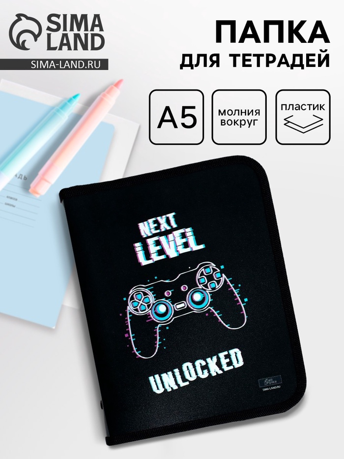 Папка для тетрадей «Гейм» А5, 180×230×25 мм, молния вокруг, пластиковая