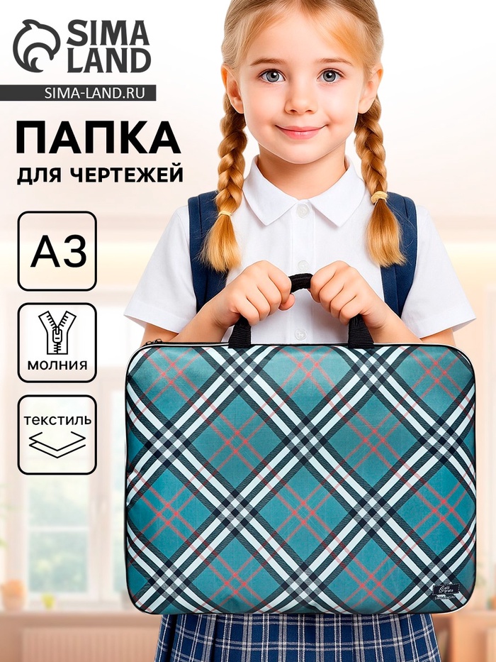Папка для чертежей и рисунков «Клетка» А3, 470×350×20 мм, с ручками, текстильная