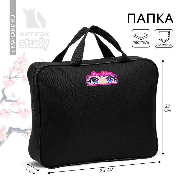 Папка для труда А4 на молнии текстиль 70 мм 350×270 «Аниме глаза»
