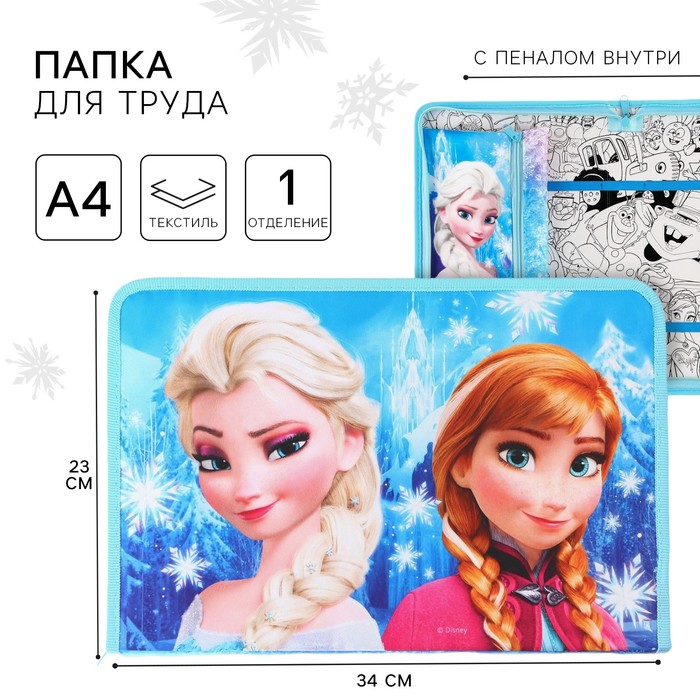 Папка для труда А4 с пеналом, на молнии, текстиль, «Холодное сердце»