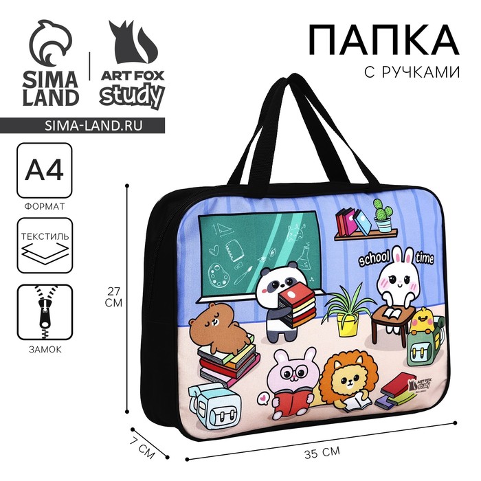 Папка для труда А4 на молнии текстиль 70 мм 360×260 «Школьная»