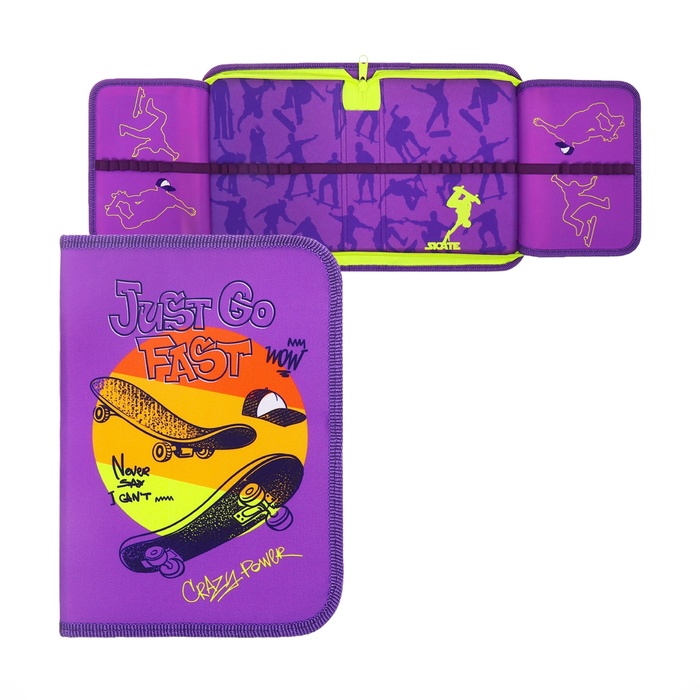 Пенал 1 секция, 140 х 200 х 40 мм, 2 откидные планки, тканевый, ПКТ 09-20 "Скейт граффити"