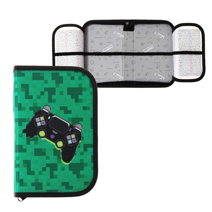 Пенал «Гейм Пиксели» 1 секция, 130×210×40 мм, 2 откидные планки, тканевый