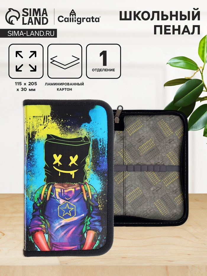 Пенал «Маска» 1 секция 115×205×30 мм, ламинированный картон