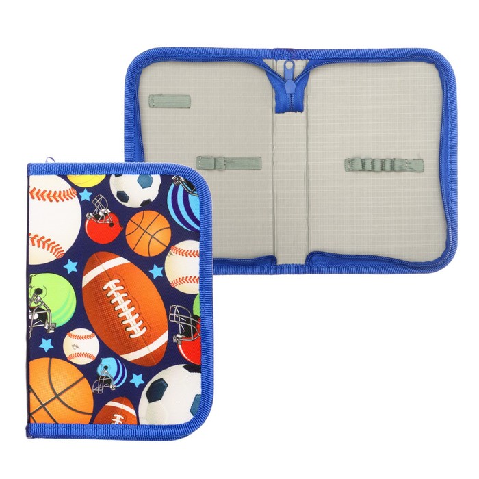 Пенал школьный "Мячи", 13 х 19,5 см, на молнии, 1 секция, с наполнением, ткань