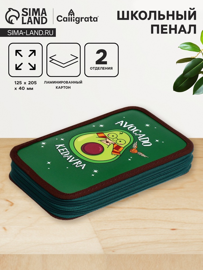 Пенал 2 секции, 125×205×40 мм, «Авокадо кедавра», ламинированный картон