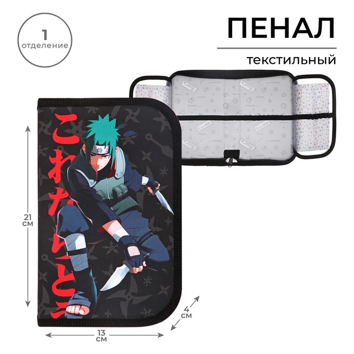 Пенал 1 секция, 130×210×40 мм, 2 откидные планки, тканевый, «Аниме клинок»