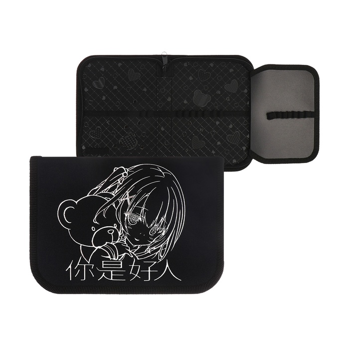 Пенал 1 секция 130 х 190 х 30 мм, с откидной планкой, ПКТ 07-22-19 "Аниме с мишкой" ламинированный картон, рисунок с эффектом металлика