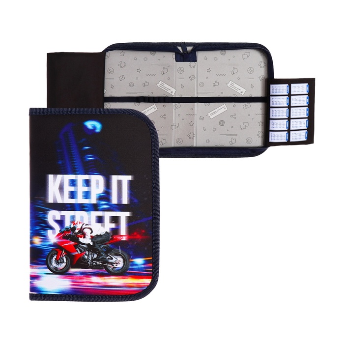 Пенал 1 секция «Мото» 140×210×40 мм, откидной карман и косметичка, тканевый